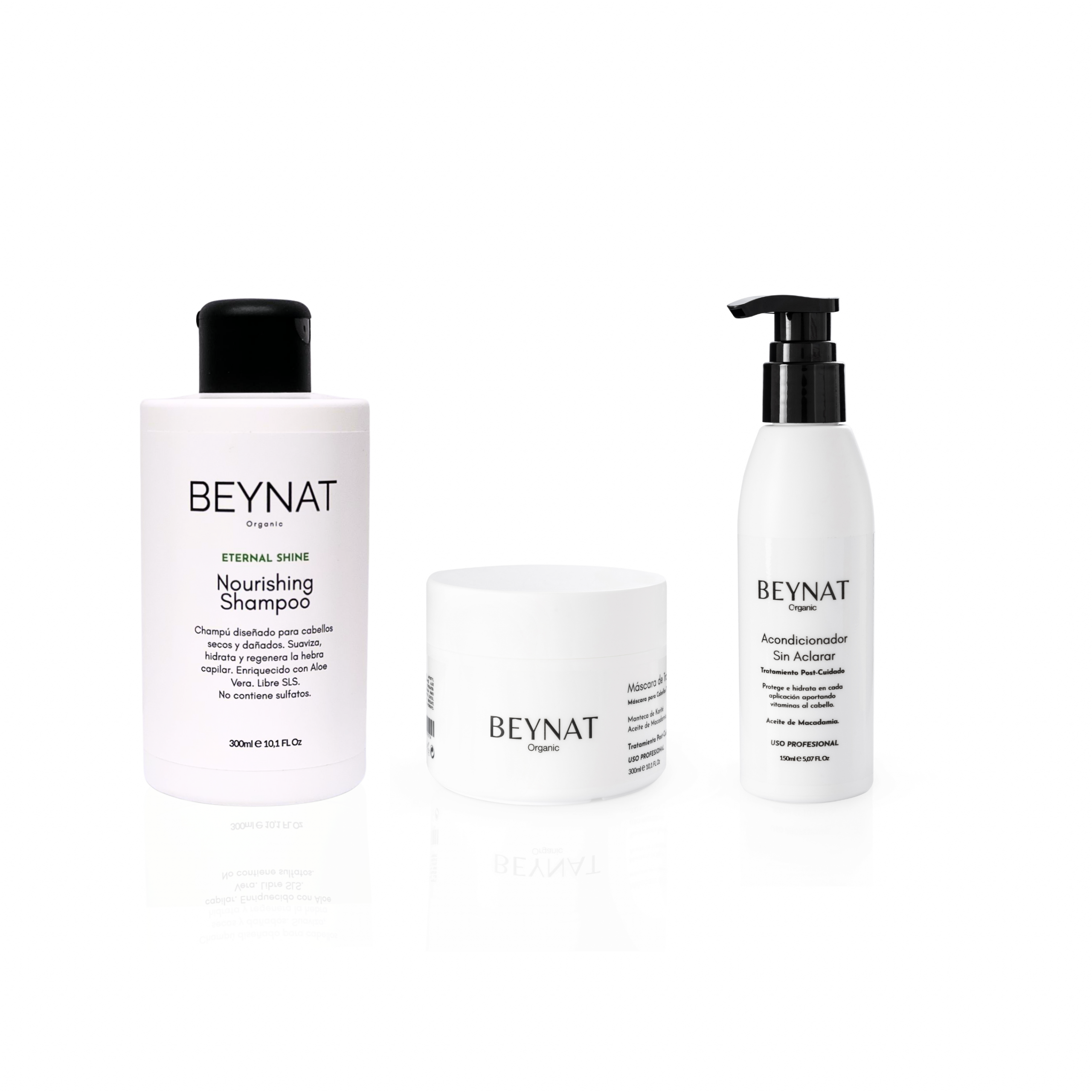 • Champú Tratamiento Nutritivo BEYNAT 300 Ml: Proporciona suavidad, regenerando la fibra capilar, gracias a sus componentes activos, Aceite de Macadamia, Biotina, vitamina A y B5.